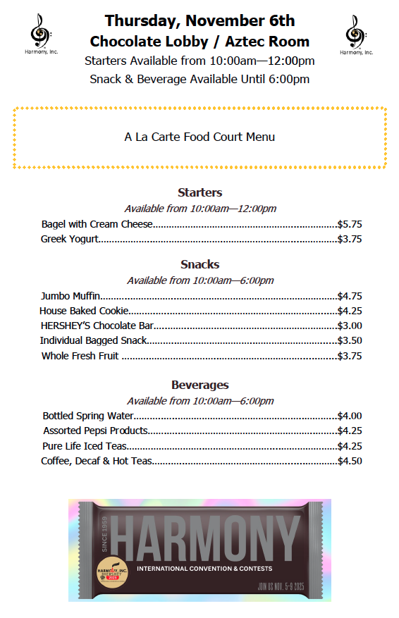 Sing with the Queens Song List Harmony Dinner Table Numbers Harmony Food Court